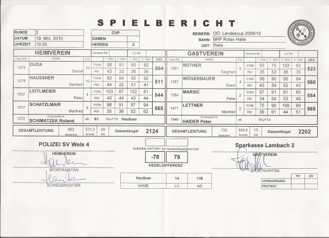Das OÖ-Cup-Spiel Polizei Wels 4 gegen SK Sparkasse Lambach 2 war keine große Hürde. Aber in der nächsten Runde wirds schon etwas schwerer, denn in der nächsten Cup-Runde hat man es mit Polizei Wels 3 zu tun!! |