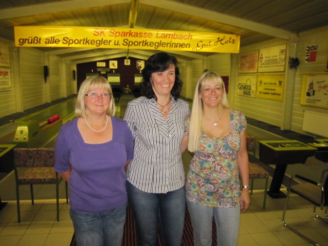 Reinthaller Manuela setzte sich eindrucksvoll mit 573 Kegel durch. Die nächsten Platzierungen erreichten Löscher Brigitte mir 559 Kegel und Rollenhagen Marianne mit 553 Kegel. |