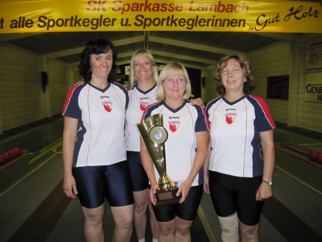 Im Bild von links: Reinthaller Manuela, Rollenhagen Marianne, Löscher Brigitte mit Meisterpokal, Wollanek Angelika, nicht im Bild Kepp Gabriele |