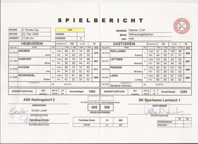 Gegen die Landesligamannschaft von ASK Nettingsdorf hatten unsere Bundesligamannschaft eine leichte Aufgabe und gewannen mit einem Kegelunterschied von 305 Kegel.