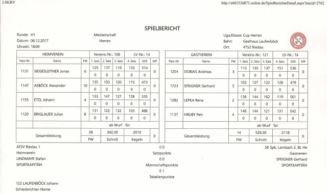 Endergebnis: 2010 : 2118 K. für Lambach 1.